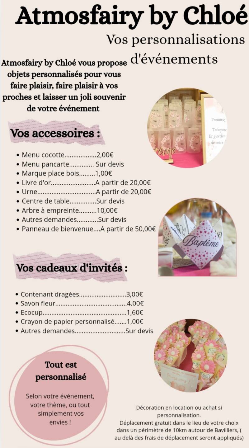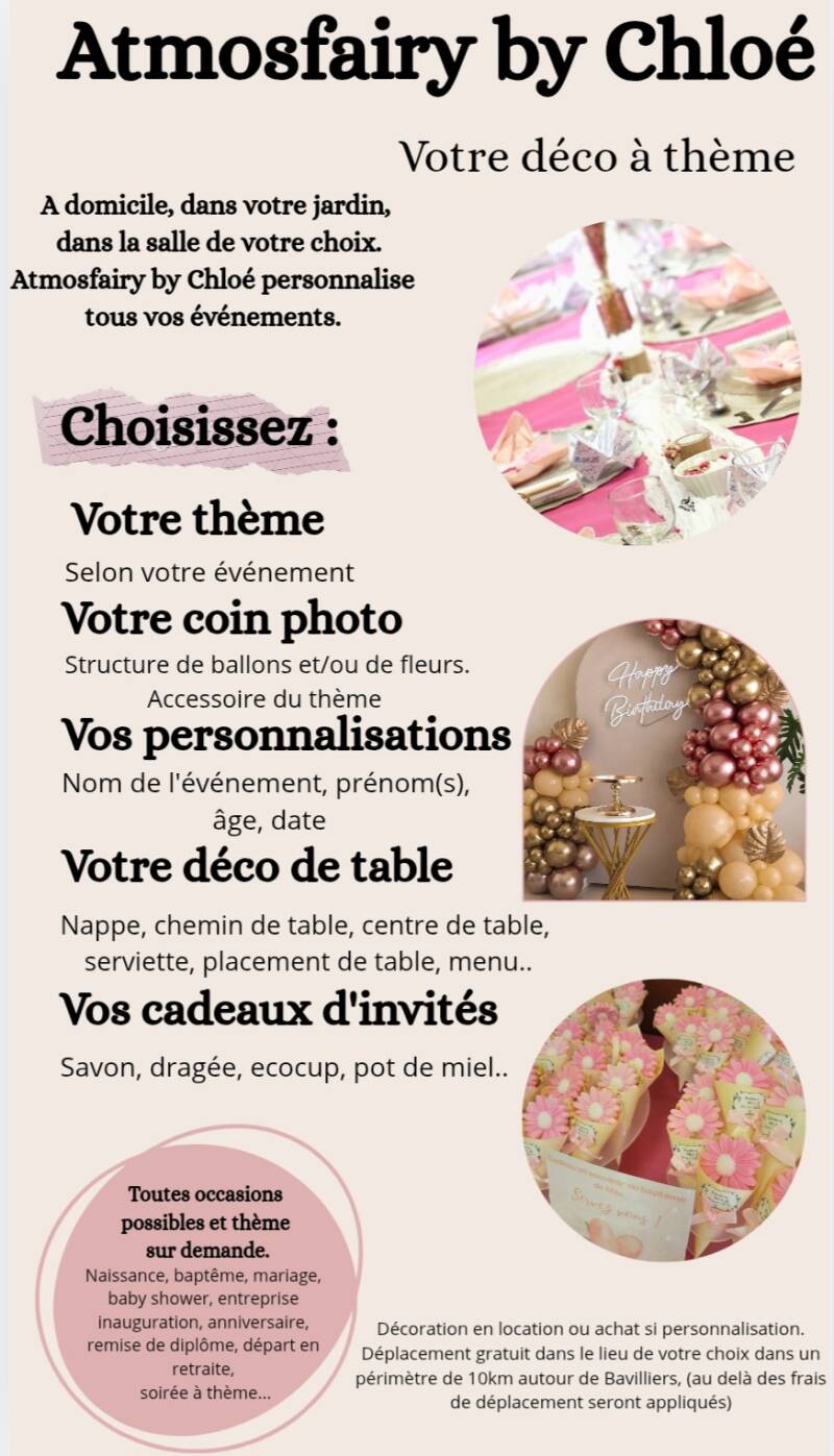 Atmosfairy by Chloé est une entreprise de décoration d'événements se situant à Bavilliers, qui a pour objectif de vous faire vivre des moments uniques.